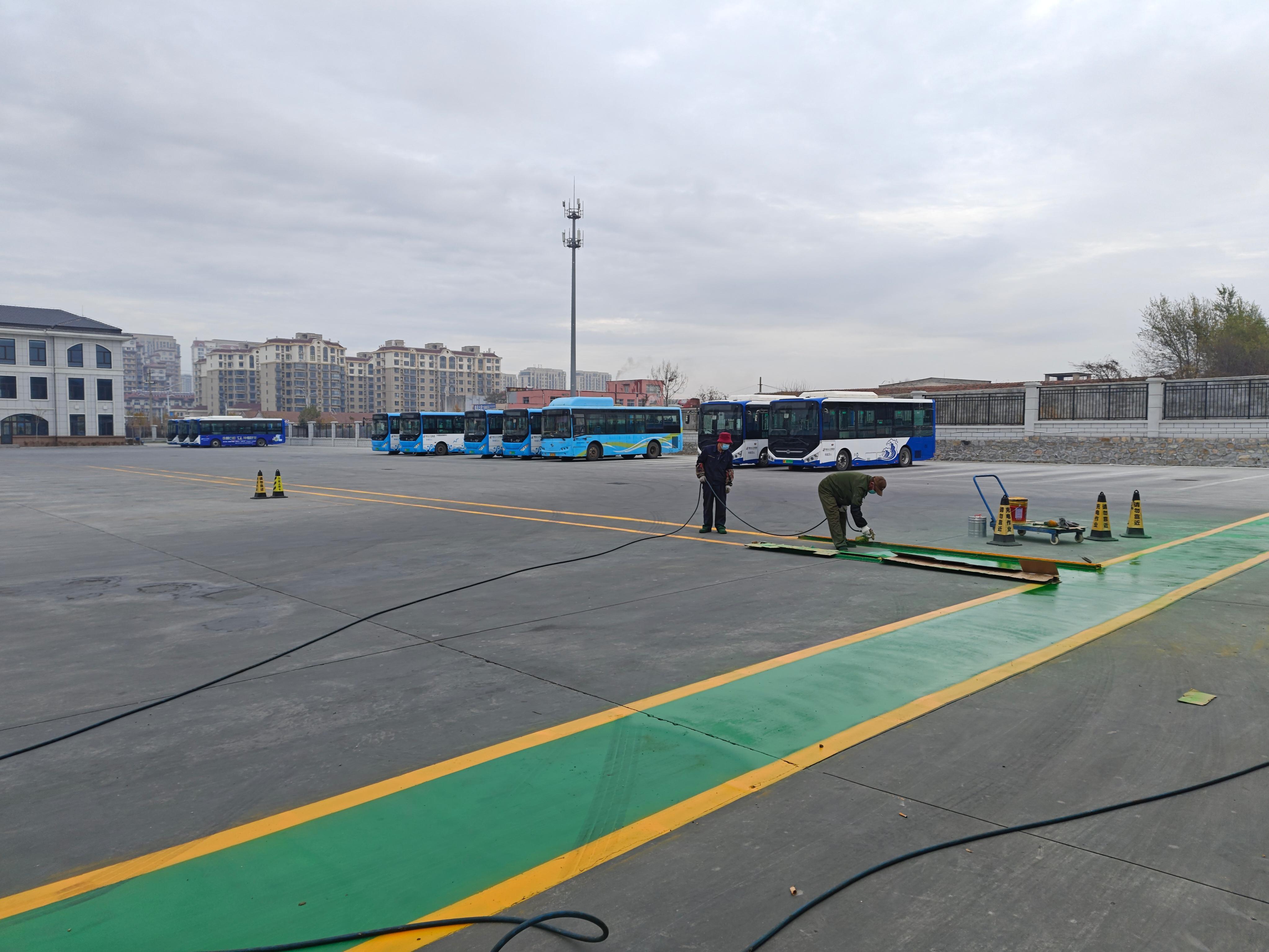 為有效落實(shí)場站標(biāo)準(zhǔn)化和維修車間標(biāo)準(zhǔn)化建設(shè)工作,改善場站安全運(yùn)營及職工的工作、生活環(huán)境,提升整體形象。牟平公司立足當(dāng)前,著眼長遠(yuǎn),堅(jiān)持“安全、美觀、節(jié)儉”的原則,對城南場站標(biāo)線進(jìn)行繪制、噴涂。